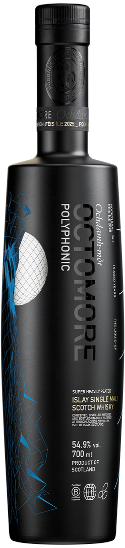 At 15 Aged Years, Polyphonic is the oldest Octomore expression released to date. A masterpiece comprised of some of the most iconic Octomore expressions of the past – further aged in cask beyond their original release – and exceptional spirit from single casks which have never been released. All brought together in perfect harmony.